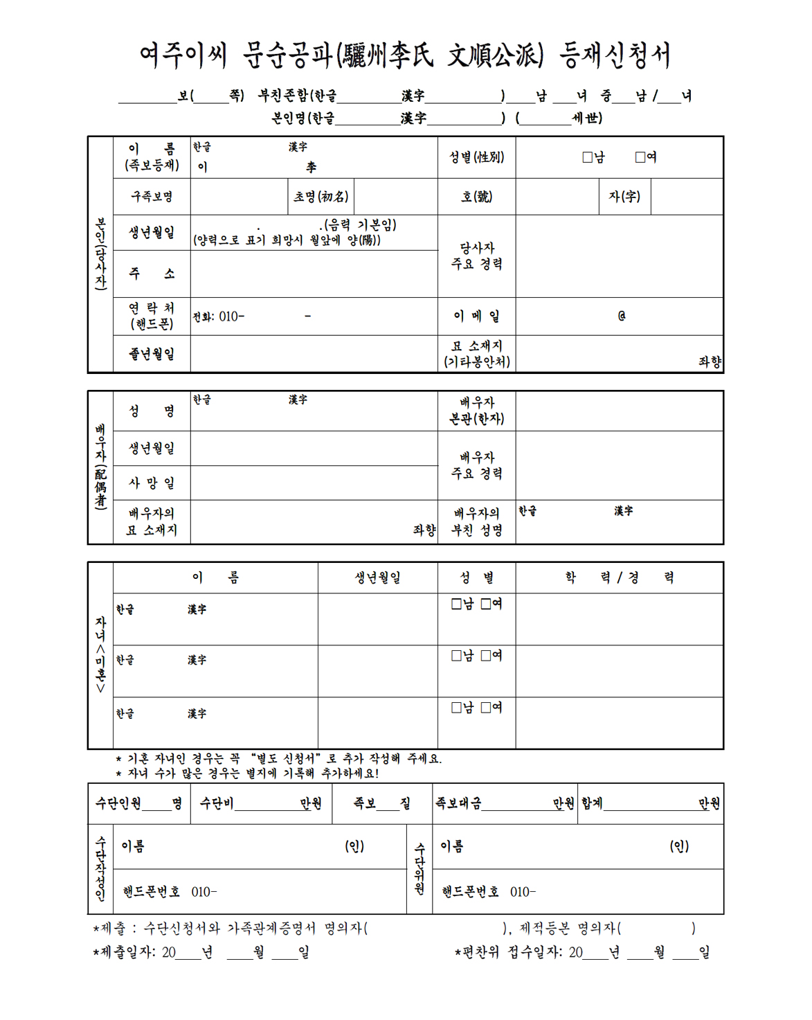 족보 등재신청양식